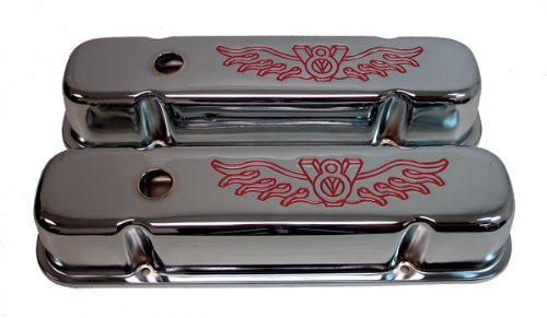 - Pontiac tall chrome steel valve covers with red V8 logo fit 1959-1981 Pontiac 301-326-350-389-400-421-428-455 V8 engines.