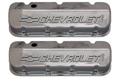 Ansen #7600 Valve Covers, Cast Aluminum, Chrome, Slant-Edge, Raised Chevrolet Bowtie Logo, Tall, 4.625 in. Height, Chevy, Big Block, Pair. S00-7600 Description:Give your engine a custom look with a pair of GM licensed slant edge valve covers by Ansen. The diagonal cut of the top section ensures no mess, and the bottom lip will give a tight seal. These valve covers feature oversize bolt hole recesses for fast removal and are designed to clear most roller rockers and stud girdles. Ansen proudly manufactures these valve covers in the USA to ensure a proper fit and durability. Oil baffle plates included.