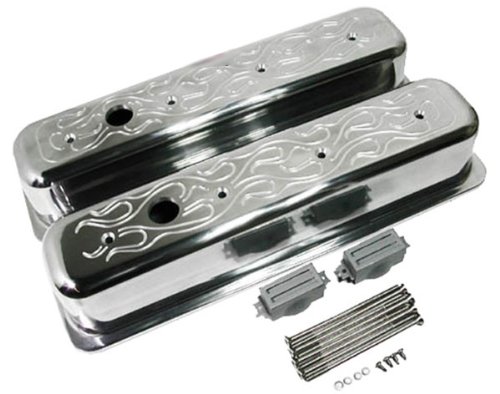 - Chevy small block flamed polished aluminum center bolt valve covers fit 1987-97 Chevy 5.0L & 5.7L small block engines.